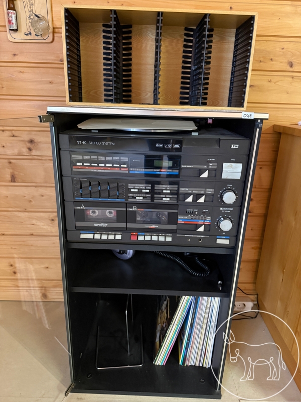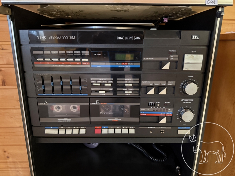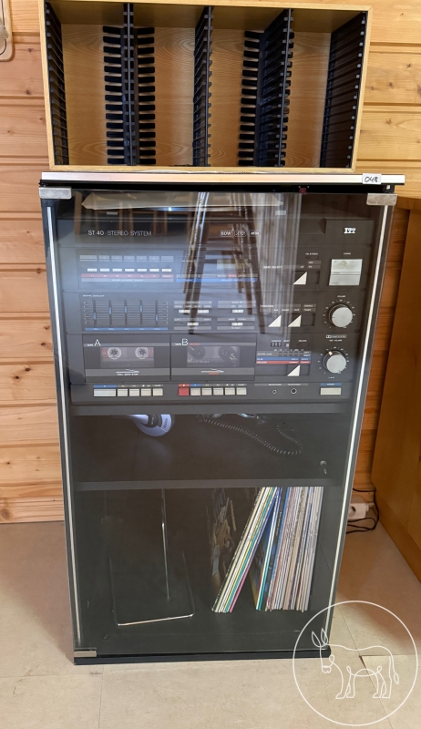 ITT ST40 Stereo System. Inkl. Audio-Möbel, inkl. Schallplattenkonvolut und Kopfhörer. Maß: 48x43x86cm.