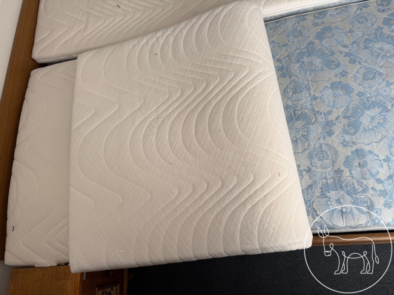 2 alte Matratzen, 2 relativ neue Lattenroste, 2 neue Visco-Topper. 90x200cm.