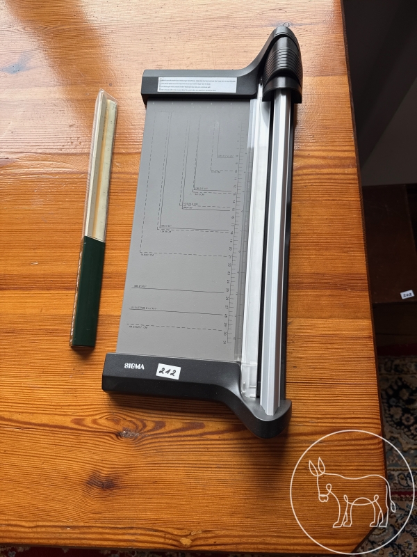 Papierschneidemaschine und Faber Castell 3-seitiges Lineal