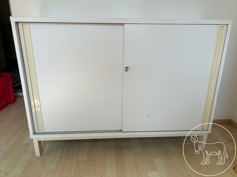 weißer Büroschrank mit Schiebetüren, versperrbar (ohne Schlüssel), 120x42x89cm.