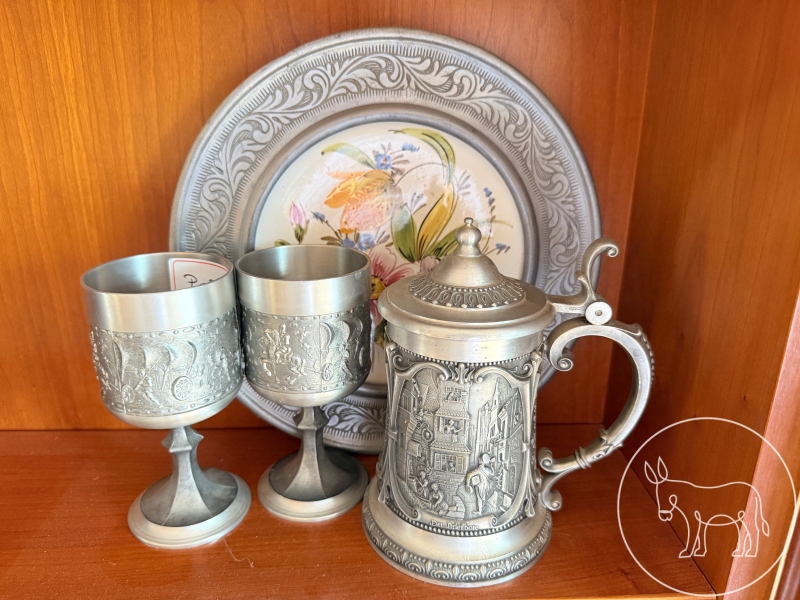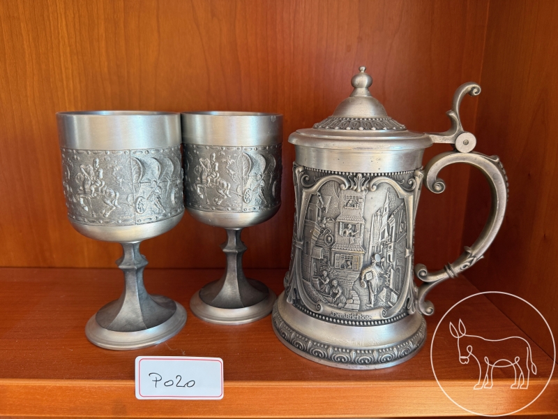 1 Teller, 2 Becher und 1 Kanne