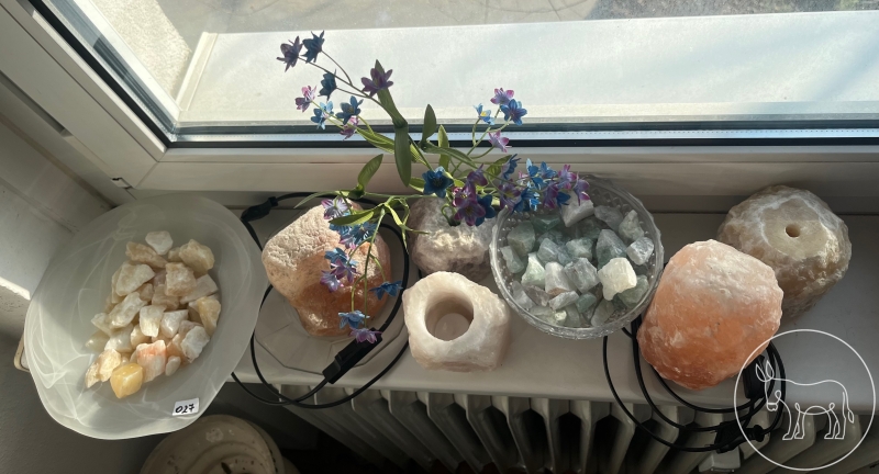 dekorative Salzsteine, unterschiedliche Größen und Formen, 1x Kerzenständer, 1x Salzsteinlampe