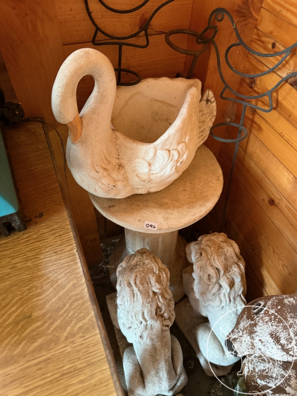 Diverse Gartendekorationen. Blumensäule Maß: d30xh50cm. 2 Löwen, ein Schwan.