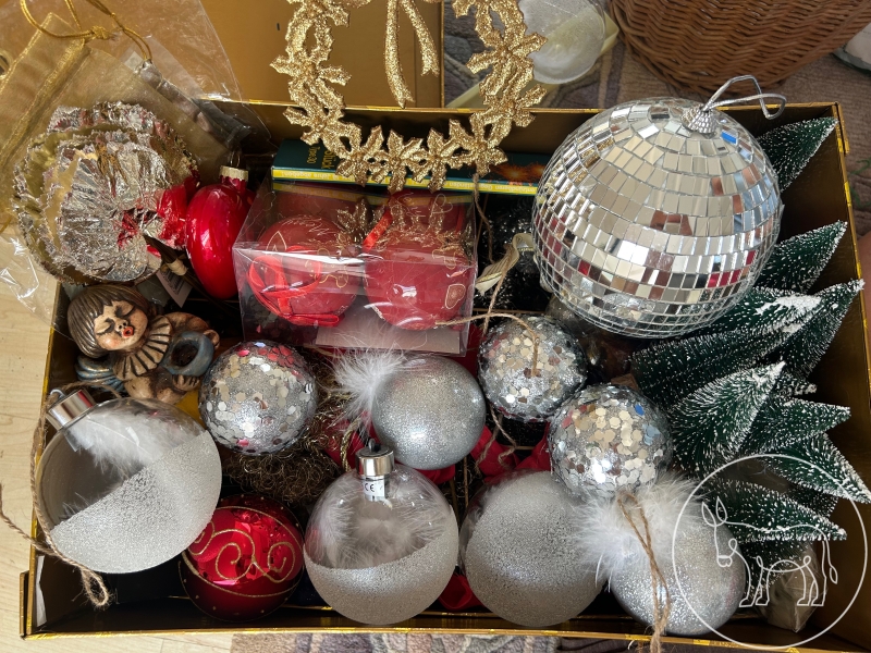 Christbaumschmuck, Weihmachtsdekoration, Geschenksbänder, etc.