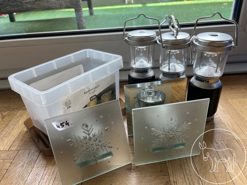 3 hängende VARTA (Balkon-) LED Lichter, 2 Kerzenständer, sternförmige Lichterkette