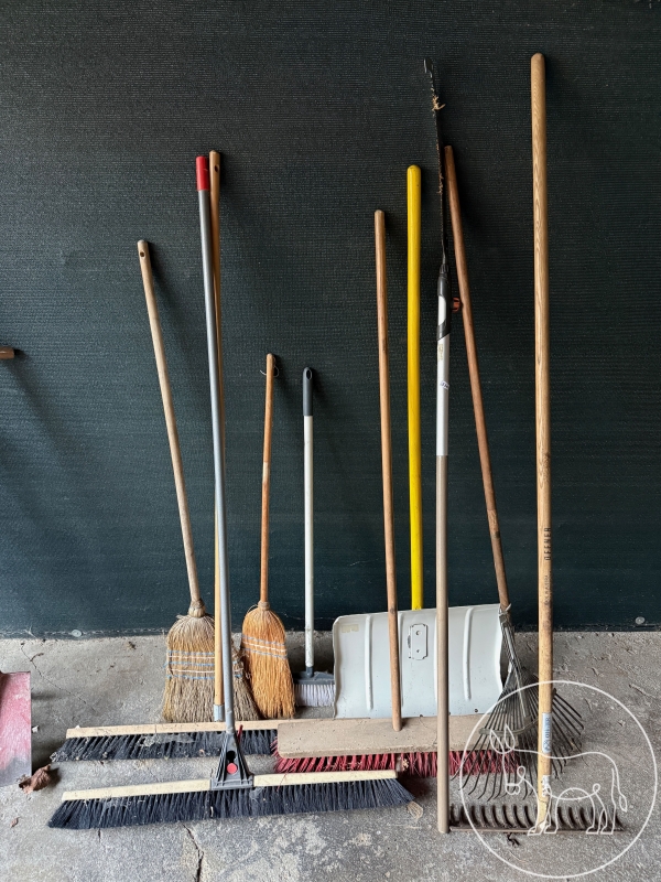 Breite Besen, Besen, Schneeschaufel, Stielsäge, Rechen, laubrechen