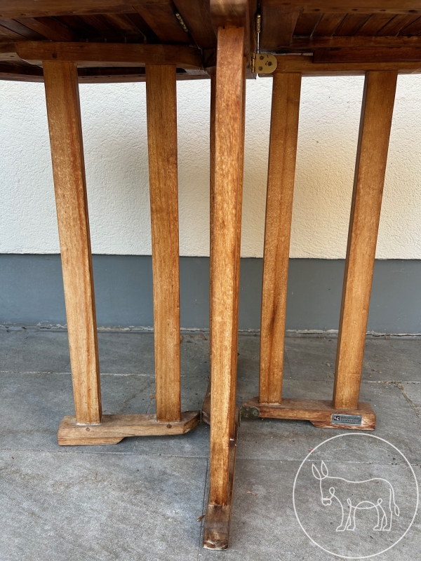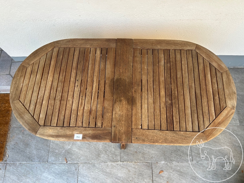 ovaler Teak Tisch. Maß: 120x60x74cm. Beide Seiten zusammenklappbar