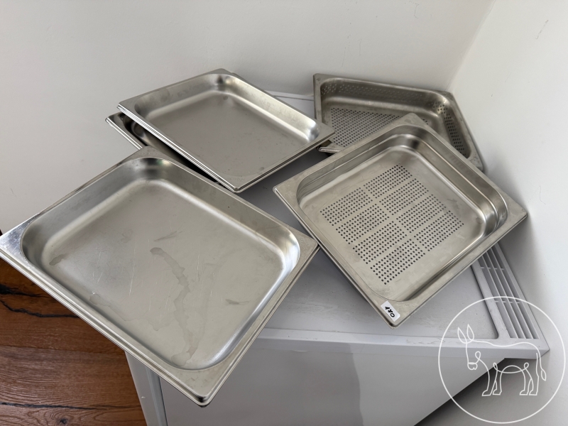 teilweise Siebeinsätze, unterschiedlich gelocht, unterschiedliche Höhen zw. 2,5 und 6,5cm Höhe
