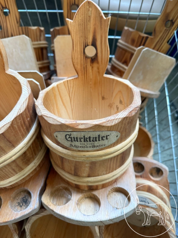 19 Stück Holzbottiche als Gastro-Tischaufsteller für Besteck, Servietten, Salz/Pfeffer/Zahnstocher etc.