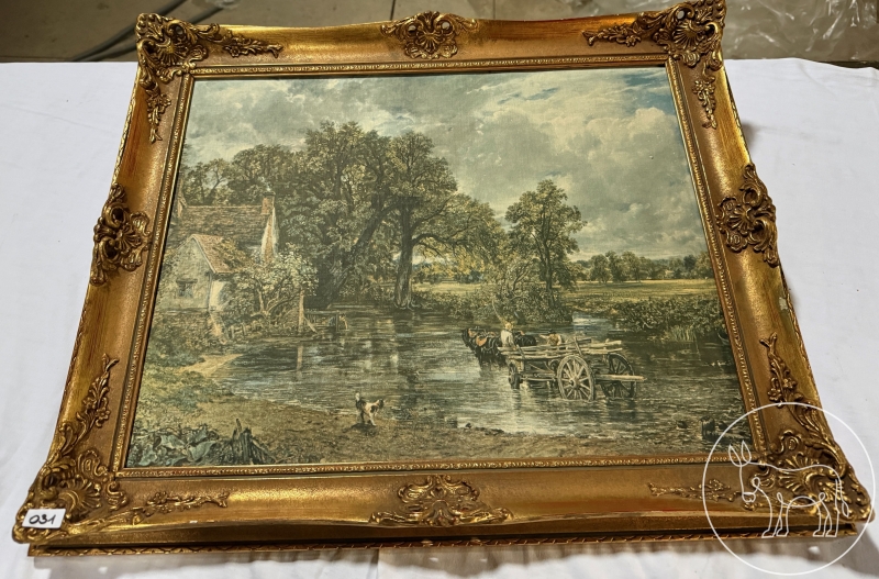 Bild in opulentem Goldrahmen, 31,5x62cm.