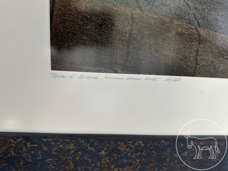 Landschaftsild in düsteren Farben von Hügellandschaft mit dunklem Rahmen, "Terra die Siena", Asciano ottobre 2005, 11/100, Maß 94x74cm