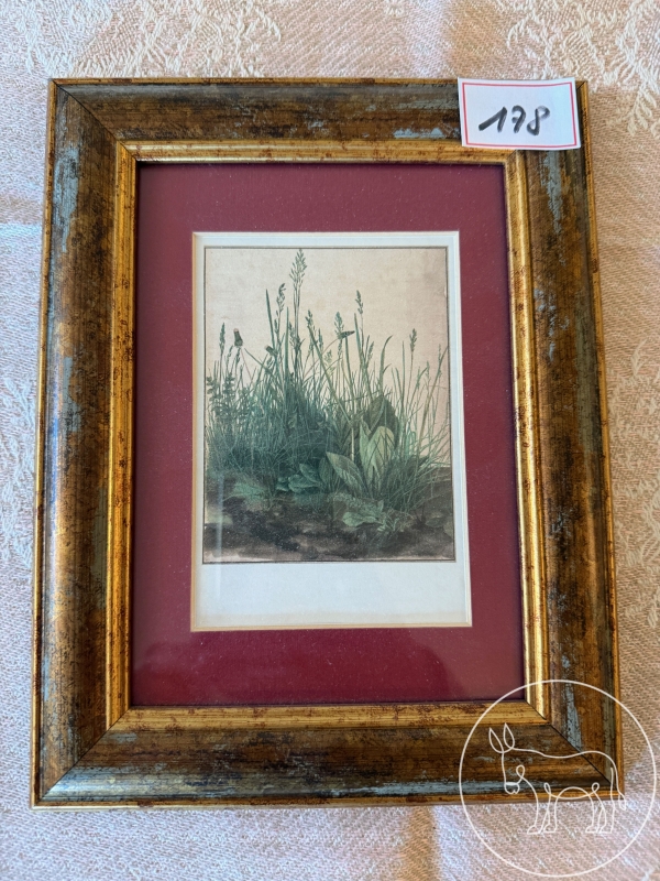 Maß: 23x18cm, Druckgrafik in schönem Rahmen. "Das große Rasenstück" / Albrecht Dürer.