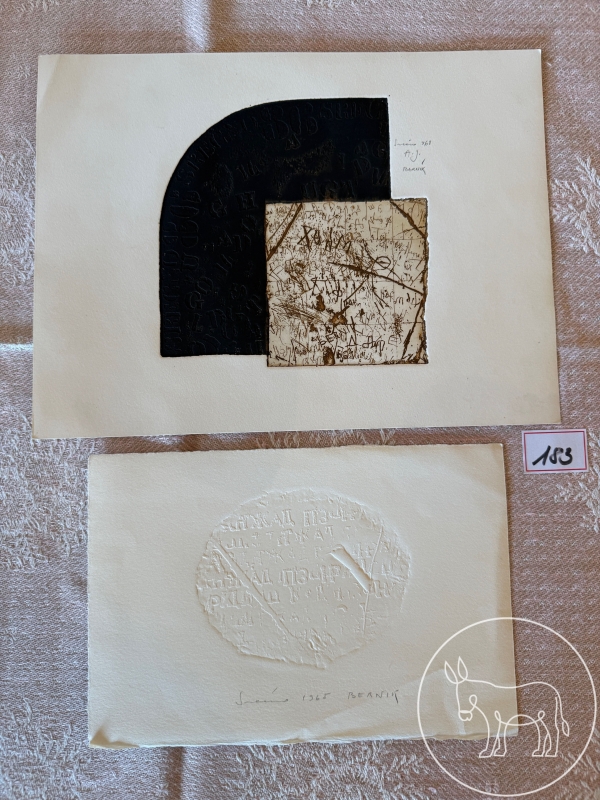 Detaillierte Aquatinta Radierung des slowenischen Künstlers Janez Bernik Maß: 23x30,8cm. Signiert und datiert. Untere Arbeit: Prägedruck, Janez Bernik, signiert, datiert. Maß: 16,7x24,2cm