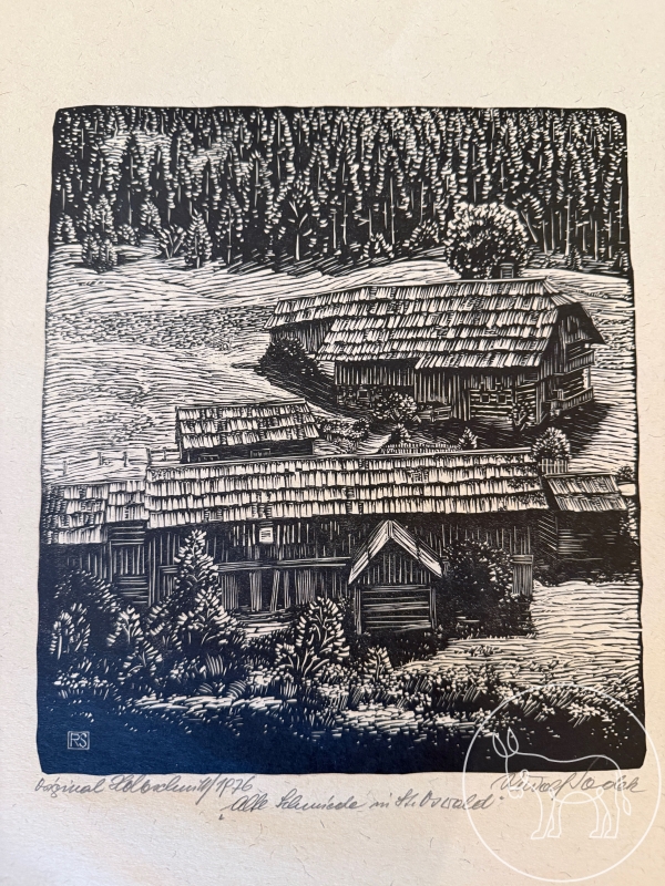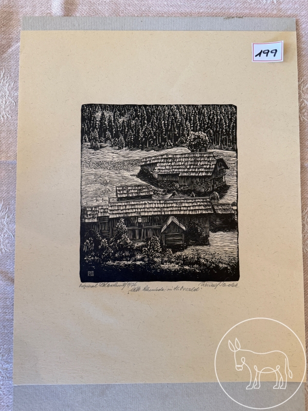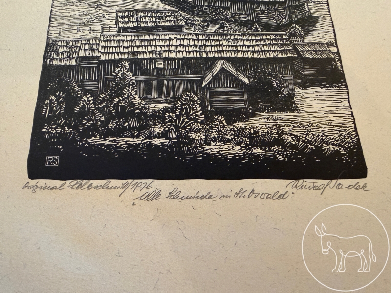 Original Holzschnitt 1976, "Alte Schmiede in St. Oswald" Rudolf Sodek, Maß: 43,5x35cm.