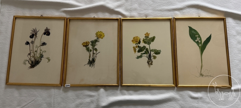 4 florale Drucke in goldenem Rahmen, 37x28cm