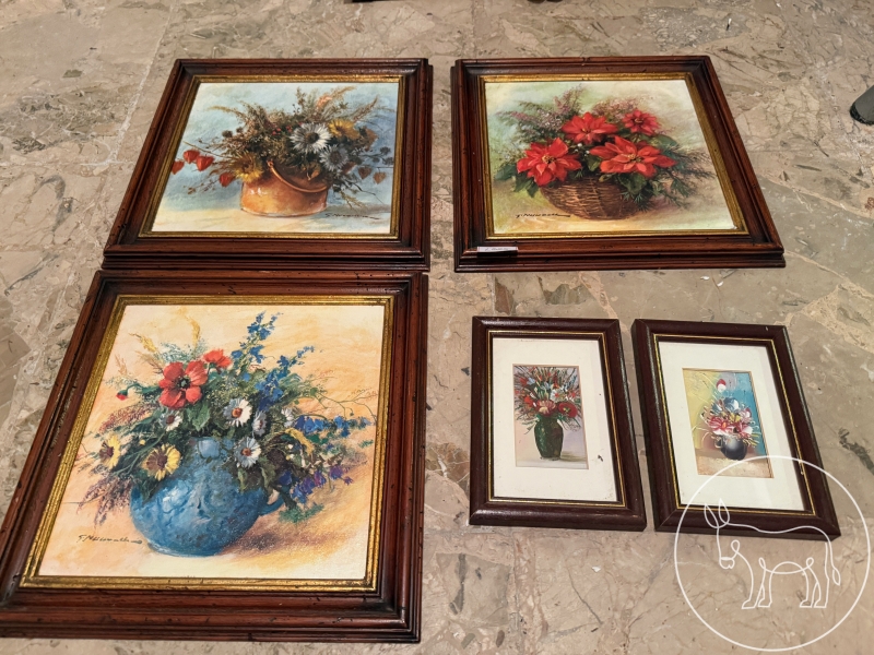 Stilleben, 3 große (31x31cm)und 2 kleine Bilder