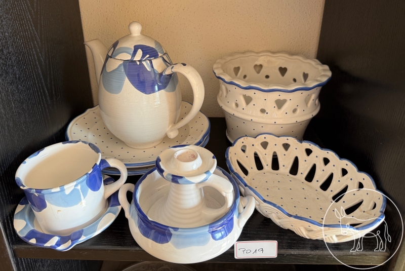 Konvolut blau/weiß, Keramik-Körbchen, Übertopf, Töpfchen, Aschnebecher, Teller, Kerzenständer, Teekanne