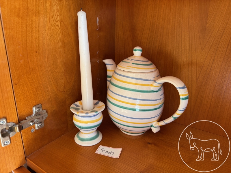 Kerzenhalter und Teekanne grün/Gelb/blau/weiß