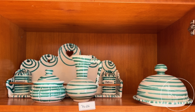 Gewürzhalter mit 2 Gewürzdosen, Butter-/Käseglocke, Zuckerdose/Salzfaß, Vase