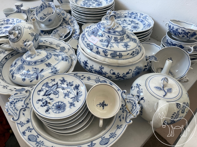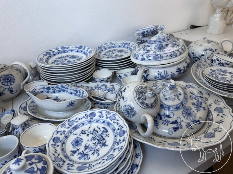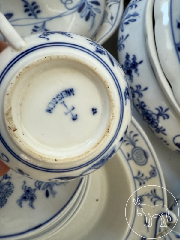 großes Geschirrkonvolut mit Zwiebelmuster von Meissen, Teller, Tassen, Schalen, Schüsseln, Salz&Pfeffer Streuer, etc.