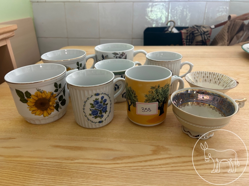 Konvolut von 9 verschiedenen Tassen. Verschiedene Größen, Formen und Muster.