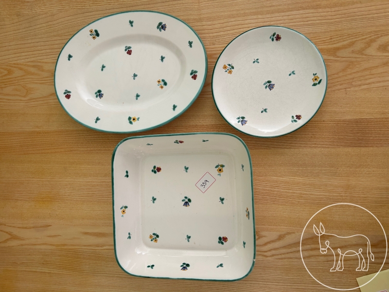 1 Schüssel 25x25cm, 1 Platte Länge 31cm, 1 Desertteller