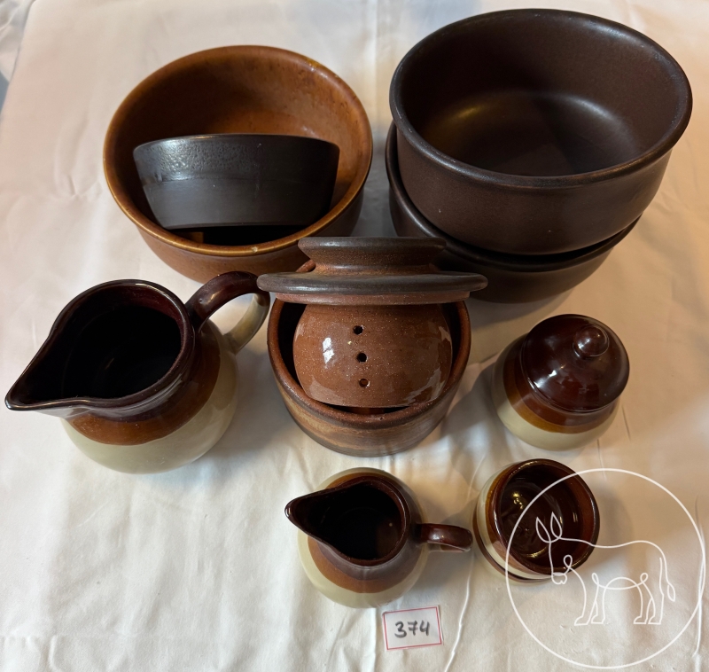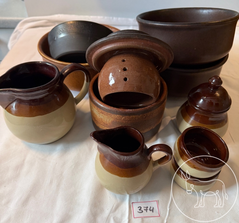 diverse ofenfeste SAChüsseln und Schalen, Butterfaß und verschiedene Krüge.