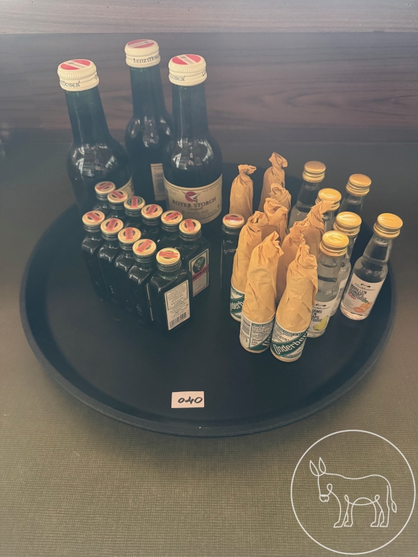 Jägermeister Stamperl, Williams Birtnenschnaps, Roter Storch Zweigelt, Kreuterlikör, &