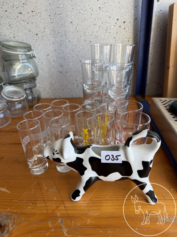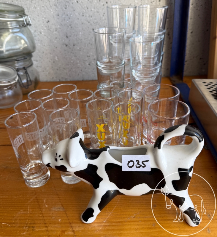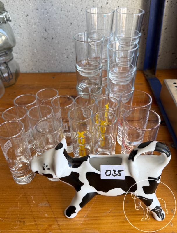 Schnapsstamperl in unterschiedlichen Formen, und unterschiedlicher Firmen, Zahnstocher-Spender