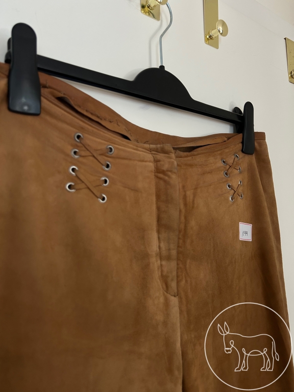 leicht ausgestellte hellbraune Raulederhose mit Nietendetails. Größe 42/44.