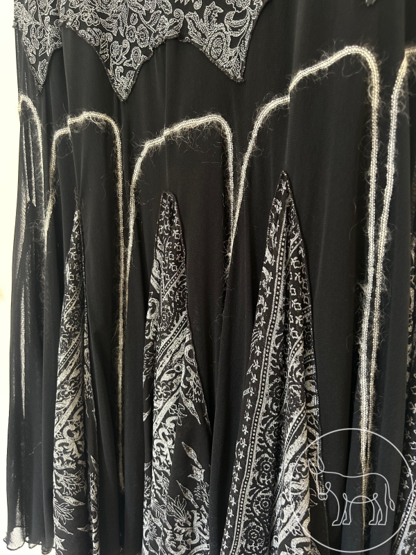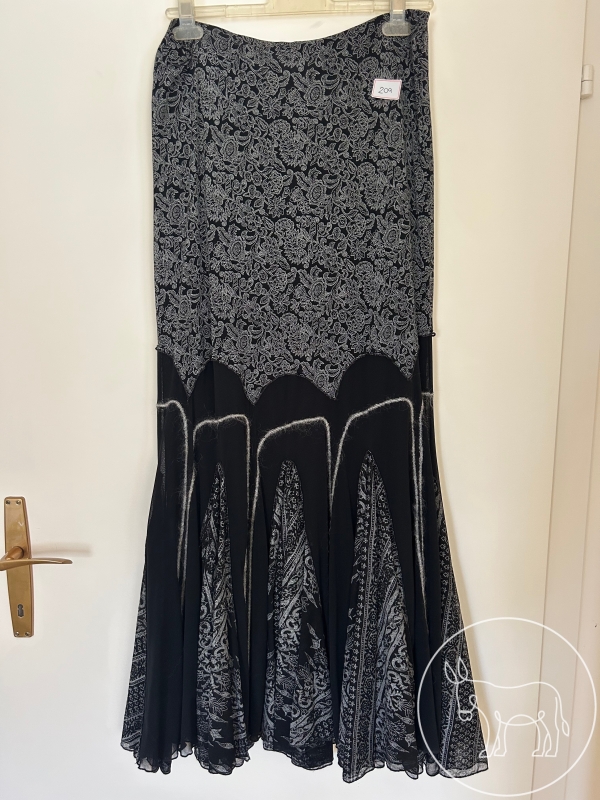 gemusterter, bodenlanger Rock mit Godet-Schnitt (oben schmal, ab dem Knie glockig. Größe 42/44