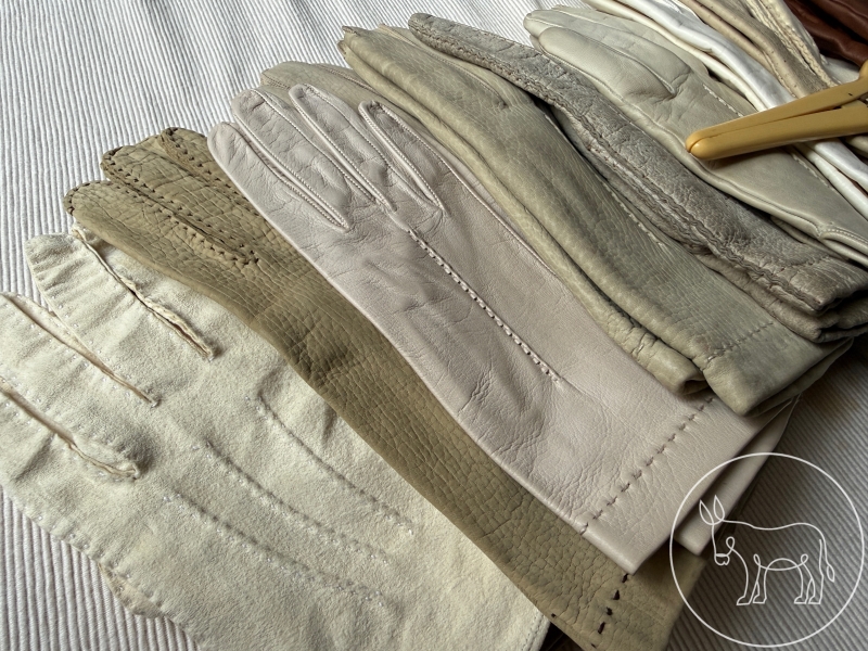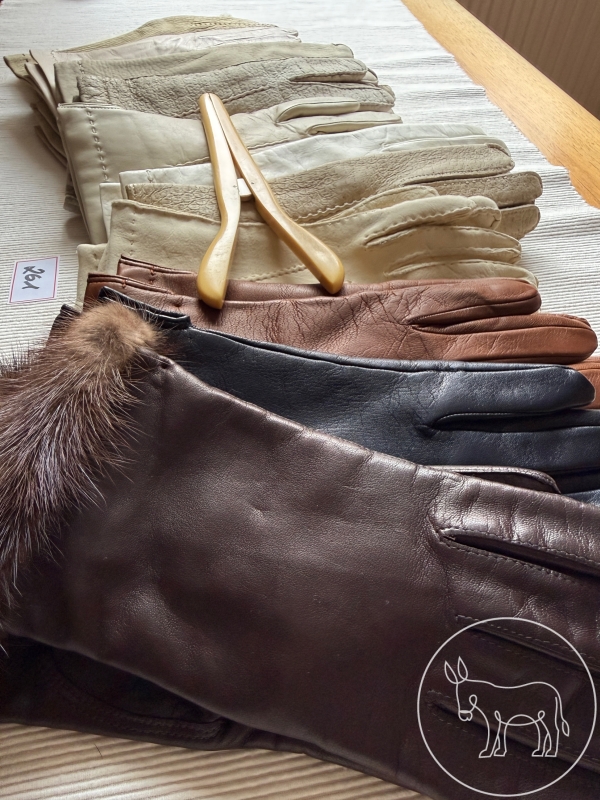 riesiges Konvolut an neuen und unbenutzten Damen-Lederhandschuhen, inkl. Handschuhspreizer (um die Handschuhe nach dem Waschen wieder in Form zu bringen). Hauptsächlich Größe 7. Die Handschuhe wurden fürs Foto aus der Originalverpackung herausgenommen.