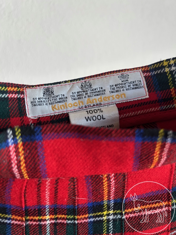Koinloch Anderson. Rot karierter Kilt, Größe 42.