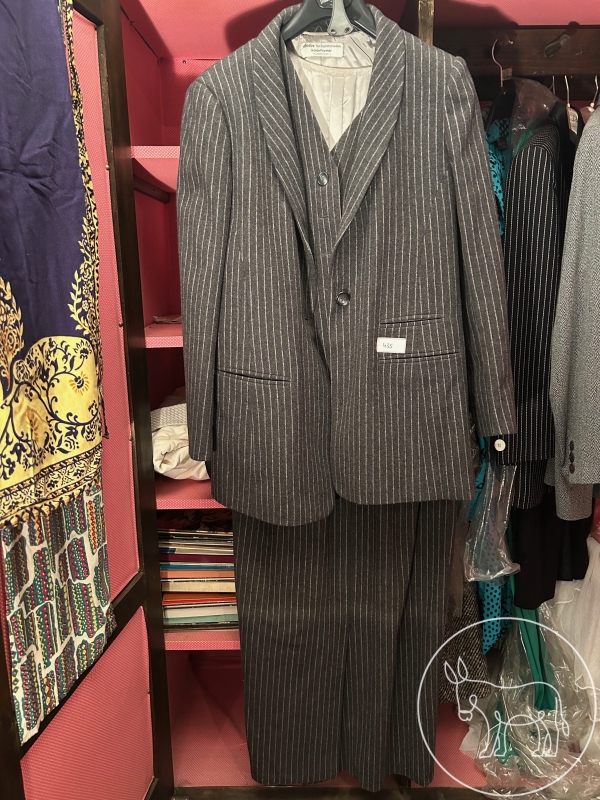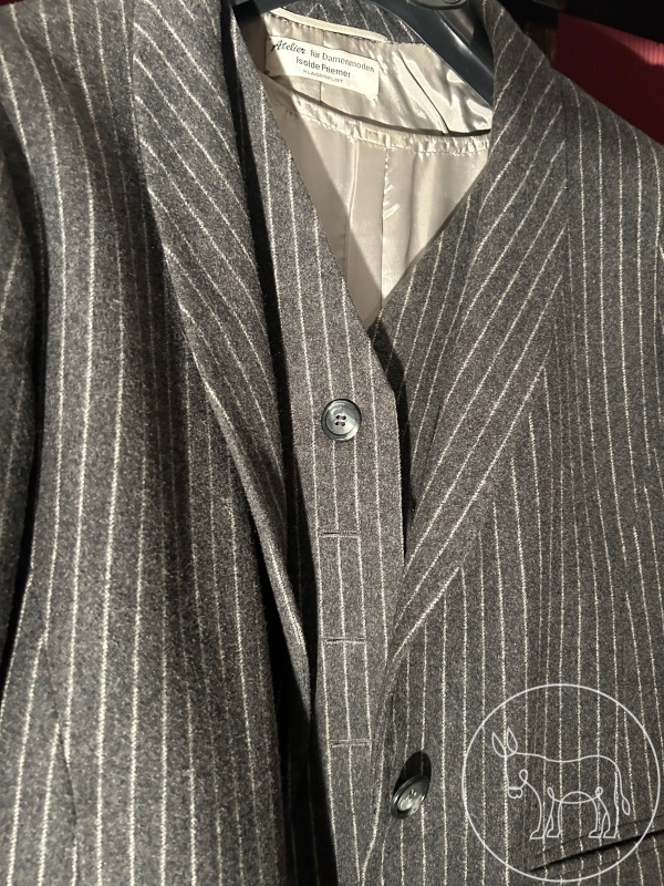 Nadelstreif.Kostüm bestehend aus Bleistiftrock, Weste und Sakko. Gefertigt im Damenmodenartelier Isolde Priemer