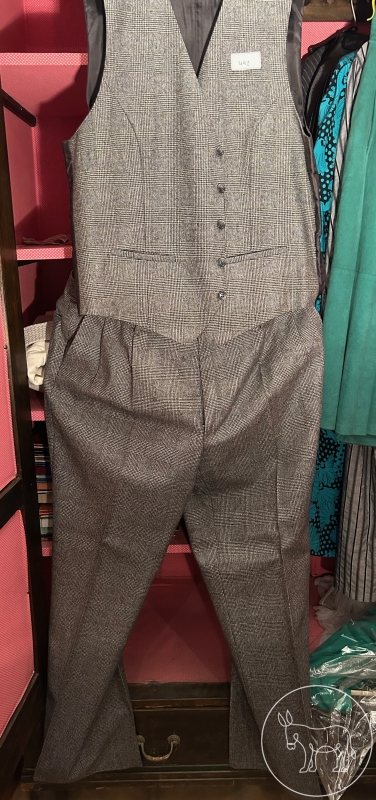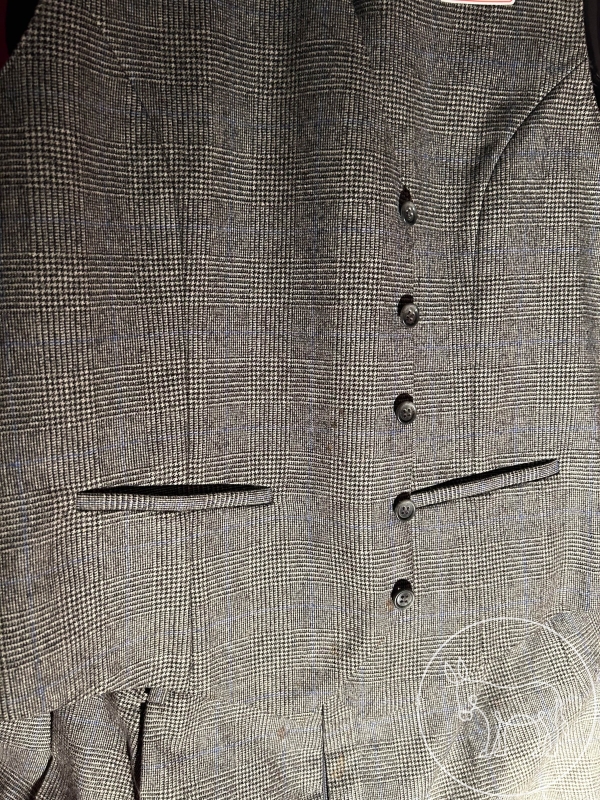 Pepita-Zweiteiler für Herren in Größe 58, bestehend aus Hose mit Bundfalten und Weste