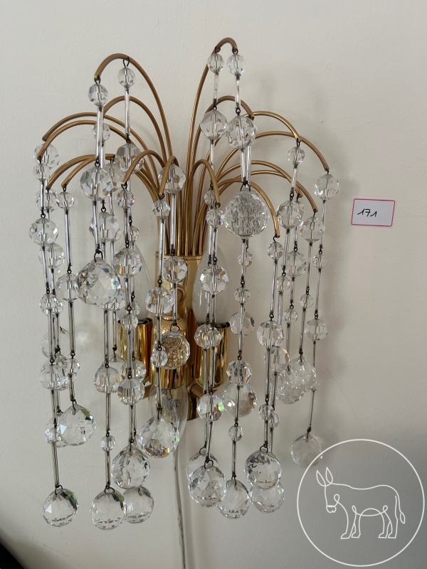Messinglampe mit hängenden Kristallelementen und Kristallkugeln. Maß: 26x40cm