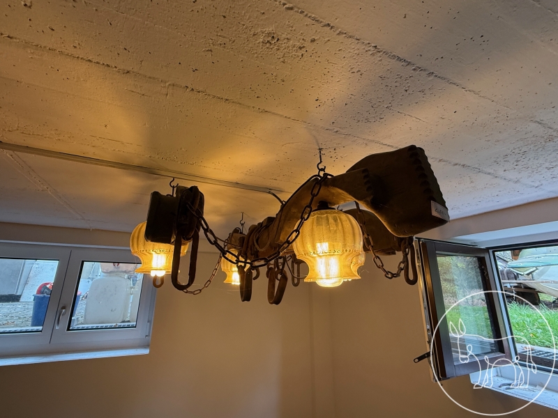 altes Wagengestell, Fuhrwerk-Gestell zu Deckenlampe umgebaut. 120x80cm