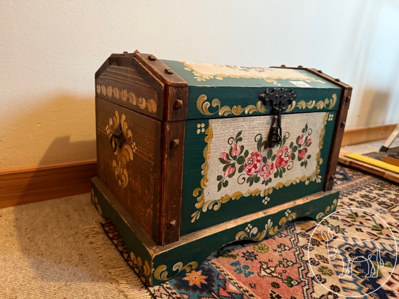 bäuerliche Holztruhe. Maß: 44x30x32cm