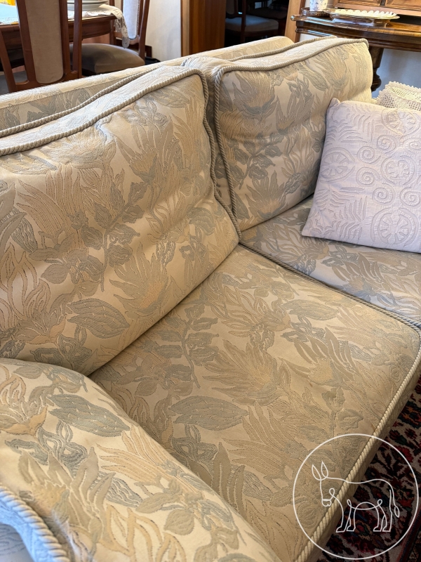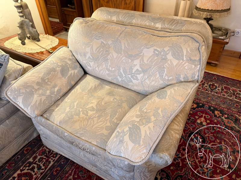 Sitzgelegenheit für 6 Personen. Feauteuil (90x90x77cm), 2-Sitzer (160x90x77cm) und 3-Sitzer (220x90x77cm). Exklusive Zierkissen.