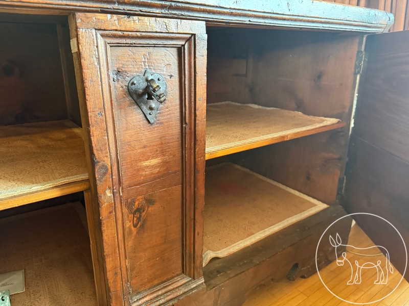 Bauerntruhe mit 2 Türen und Schloß (mit Schlüssel). Innen jeweils ein Regalboden. Maß: 157x70x82cm. Sehr gepflegt und gut erhalten.