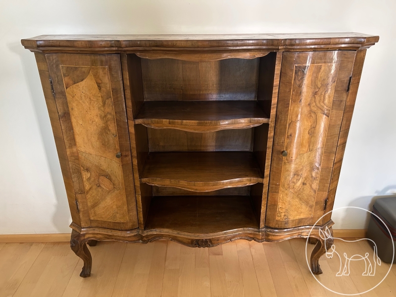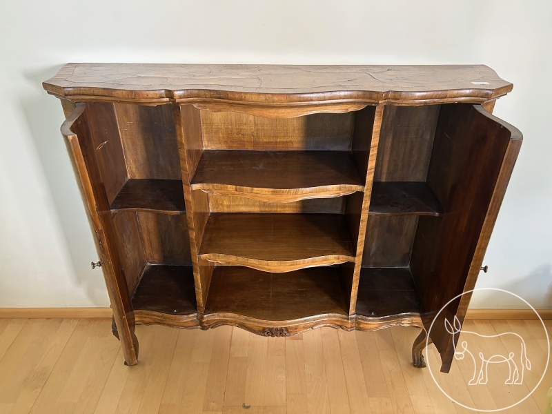 Antike Kommode mit 2 Türen und 3 Fächern. Geschwungene Beine. Maß:115x30x97cm