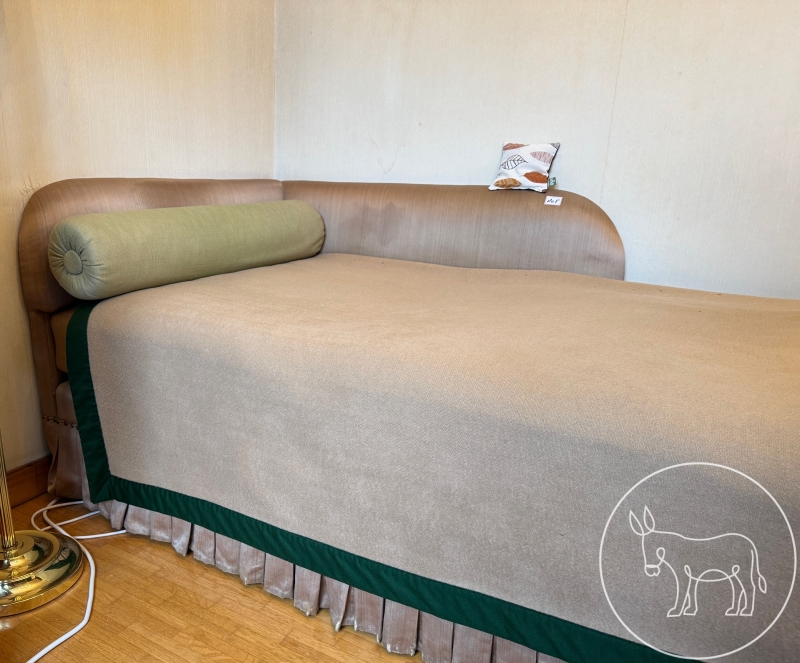 Liegefläche 90x200cm, mit 3 geteilter Matratze, Matratzenauflage und Bettüberwurf. Gesamtmaß 95x205cm. Sitzhöhe 47cm.