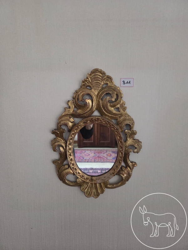 Antiker prunkvoller Holzspiegel vergoldet. 37x26cm.