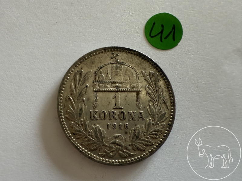 Sie gehört zur Österreichisch-ungarischen Krone (von 1892-1918 die Geldwährung in Österreich-Ungarn - in Ungarn Korona genannt). Vorderseite: Stephanskrone, Rückseite Portrait von Kaiser Franz Joseph I. Prägungsjahr 1916
