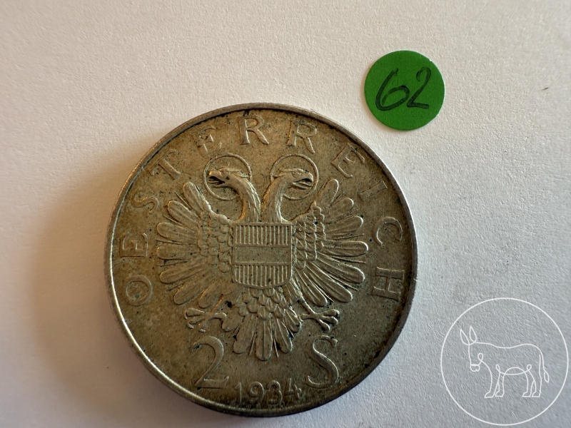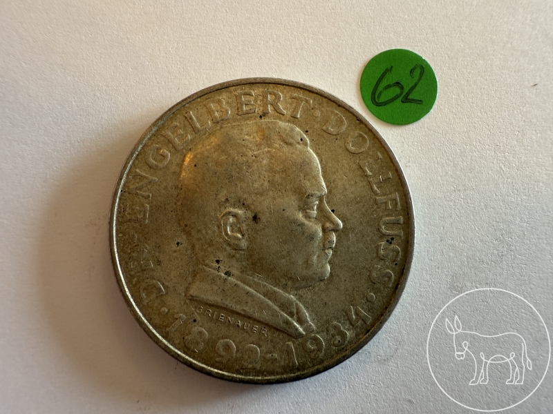Österreischischer 2-Schilling-Doppelschilling aus 10-teiliger Serie von Silbergedenkmünzen aus der Zwischenkriegszeit. Material 640/1000 Silber, Avers: Dr. Engelbert Dollfuss 1892-1934. Grienauer.