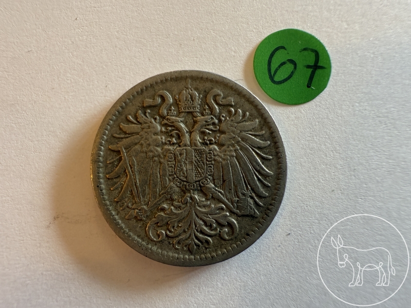 Österreichische 10 Heller Münze, Prägungsjahr 1909, geprägt unter Kaiser Franz Josef I. Diese Münzen wurden zwischen 1892 und 1914 geprägt, sie bestehen aus Nickel