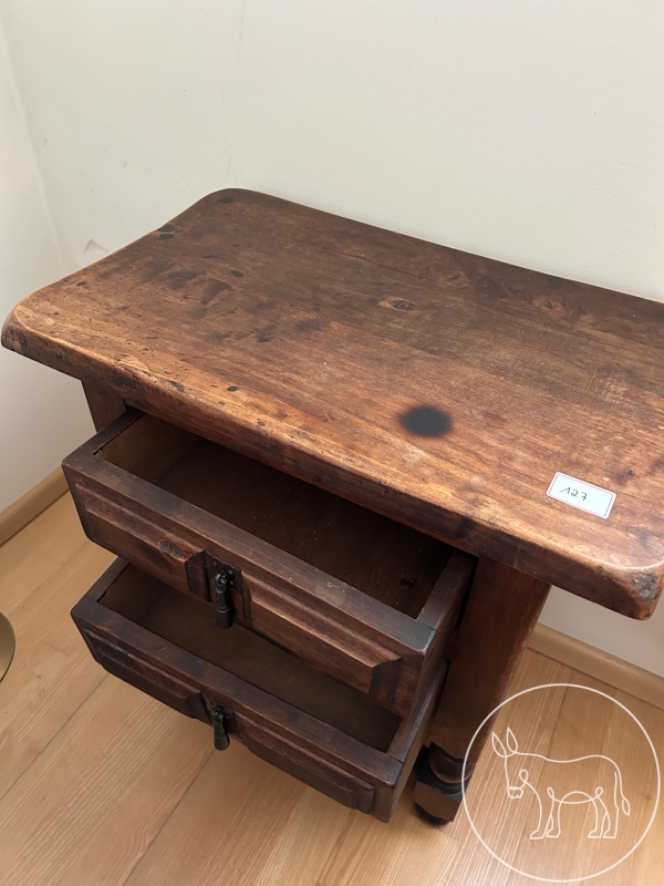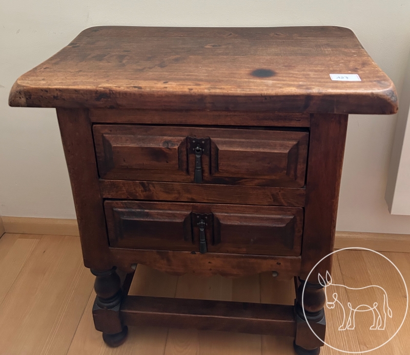Vollhoz Nachtkästchen mit 2 Schubladen. Massiv. Maß: 53x32x56cm. Kasettenförmige Fronten, Spanischer Kolonialstil oder rustikaler Landhausstil