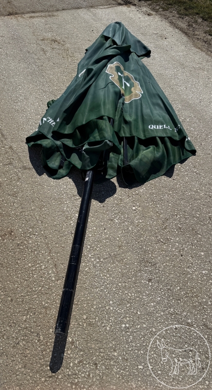 1. Schirm: grüner Schirm, Stoff neuwertig, ohne Hülle aber mit Bindegürtel, 290x290cm, Höhe 355cm, MIT Ständer, leichter Defekt beim Schließen 2. Schirm: grüner Schirm, gut erhalten, mit Hülle, 1 Strebe muß geschraubt werden, mit wenig Werkzeug kann er schnell in neuem Glanz erstrahlen..