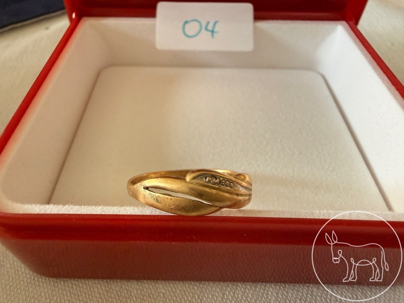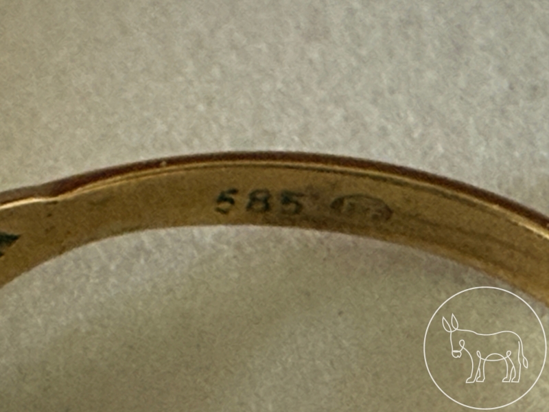 punzierter 585 Gelbgoldoldring mit kleinem Brillantsplitter RW19mm