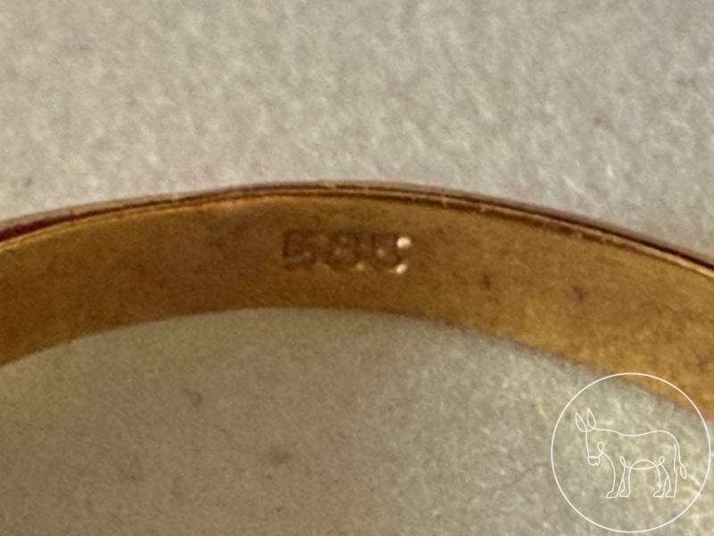 punzierter 585 Gelbgoldoldring mit WG-Detail und kleinem Brillantsplitter RW19mm